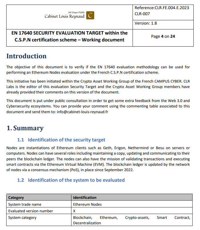 Since 2023, I have been an active member of Campus Cyber’s Working Group on Crypto Assets Security, contributing to the development of standardized security evaluation methodologies for blockchain infrastructure. As part of this collaborative effort with industry experts and institutional partners, I co-authored the “Methodology for Evaluation of Ethereum Nodes inspired by CSPN” (Certification de Sécurité de Premier Niveau), a comprehensive framework adapting France’s established security certification approach to distributed systems. To validate this methodology, our group conducted penetration testing campaigns based on the enumerated attack scenarios, with results forthcoming in an upcoming release. I presented these findings at the CONNECT2 event in June 2024, demonstrating how formal security evaluation frameworks can be applied to decentralized infrastructure. Additionally, I contributed to organizing and served as a jury member for the Banque de France Innovation Lab’s “Mission Smart” challenge, evaluating blockchain-based solutions for financial sector applications. This working group exemplifies how academic research, regulatory requirements, and industry practice can converge to strengthen the security posture of emerging technologies.